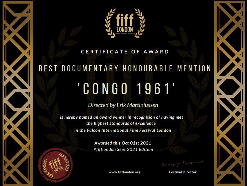 Hederlig omtale til Kongoveteranene under Falcon Internasjonale filmfestival i London. Takk til hele teamet bak filmen og alle som har støttet prosjektet.
